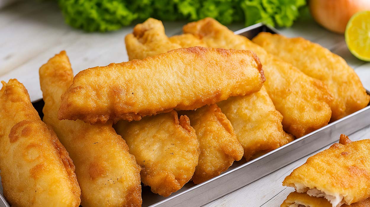 Passe os filés na farinha de trigo seca, retire o excesso e mergulhe na massa cremosa de empanamento. Em seguida, leve direto ao óleo quente (com cuidado), fritando até ficarem dourados e crocantes.