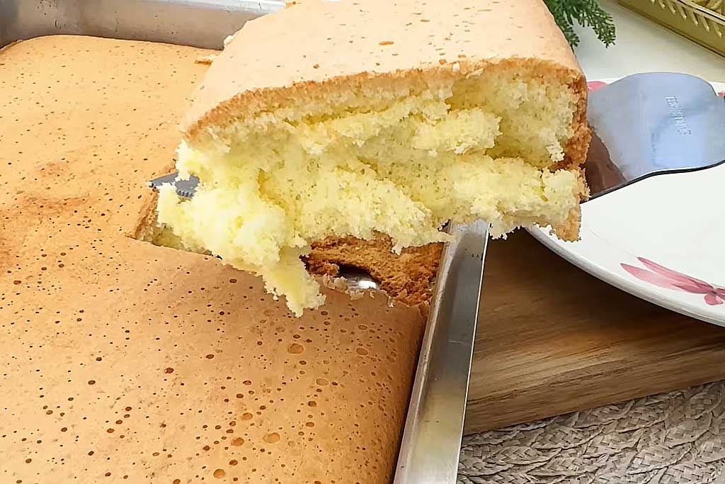Não. O segredo para que o bolo cresça e fique fofo está em bater bem os ovos com o açúcar, garantindo uma textura aerada.