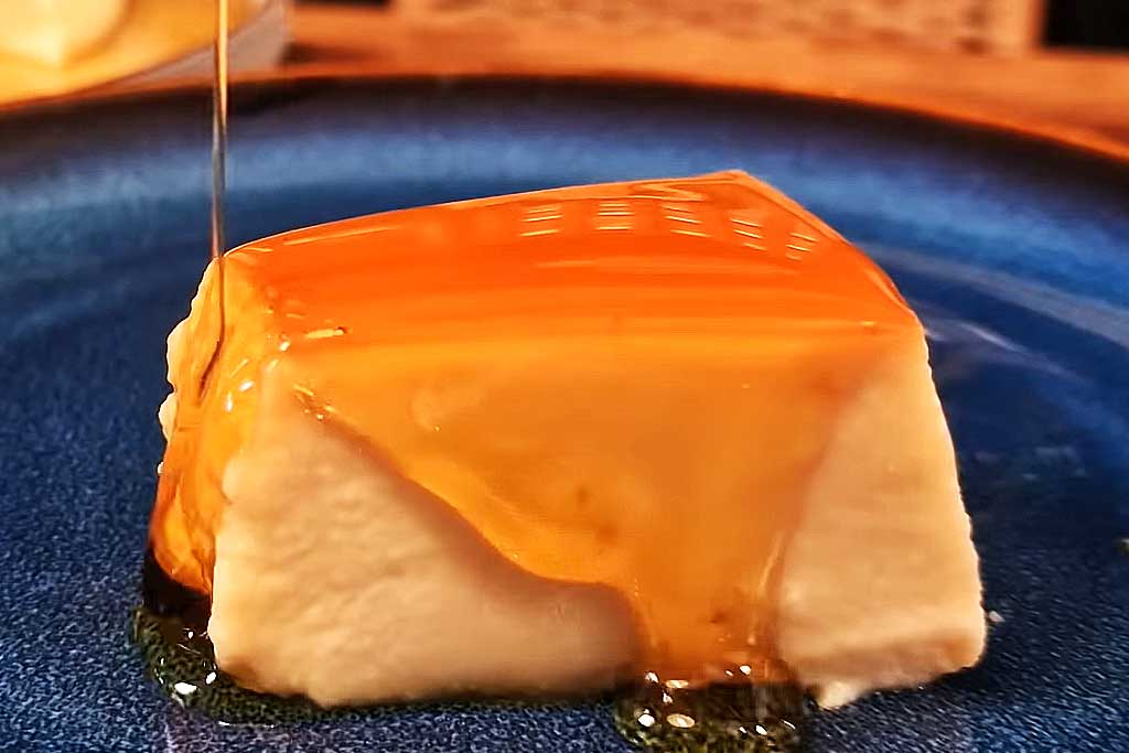 - Vire o pudim sobre um prato e deixe a calda escorrer.