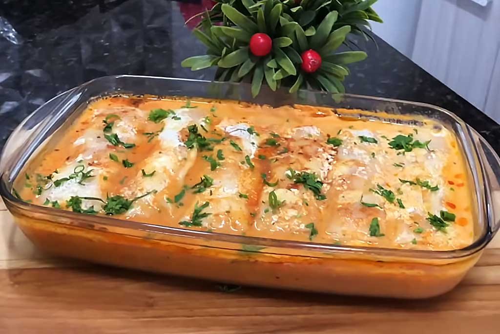 Prontinho! Nosso canelone de massa de pastel está pronto e ficou uma delícia!